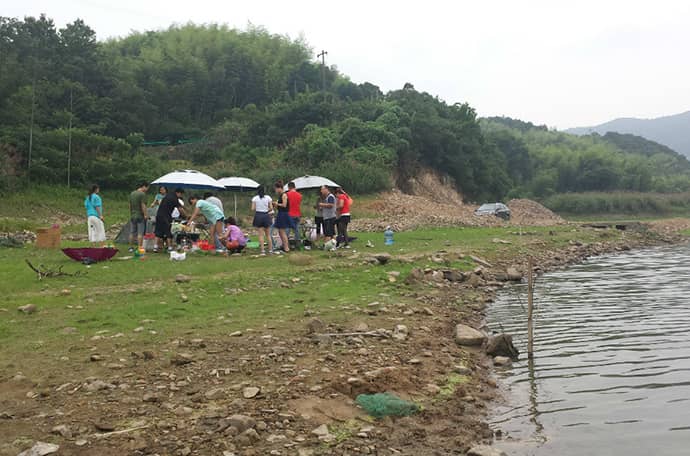 In June 21, 2015, the weather is fine, pleasant climate, employees in Maori barbecue near the reservoir. All ready materials, some people responsible for the series of ingredients, and some responsible for baking, some people responsible for the tent, and some people play a start, a vibrant scene. This day we eat happy, happy to play.