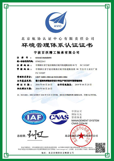 環(huán)境管理體系證書
